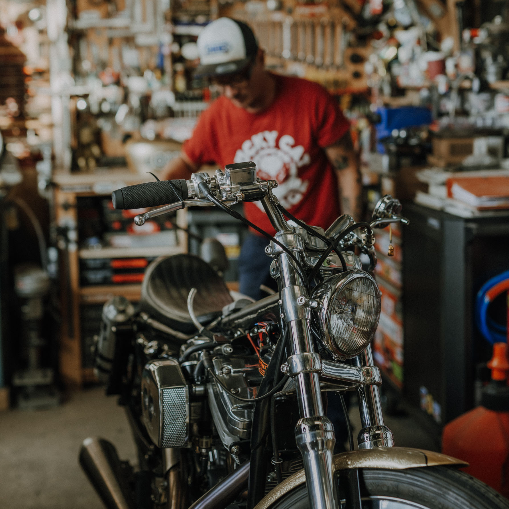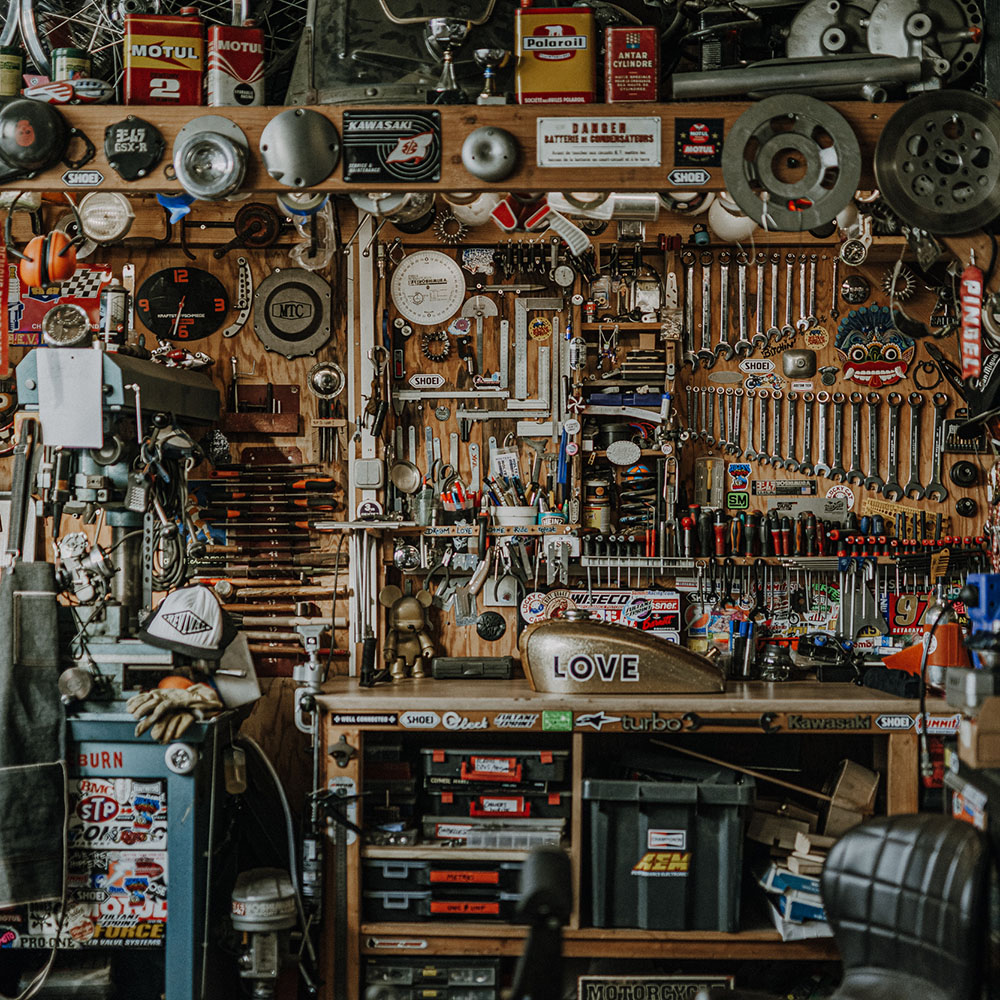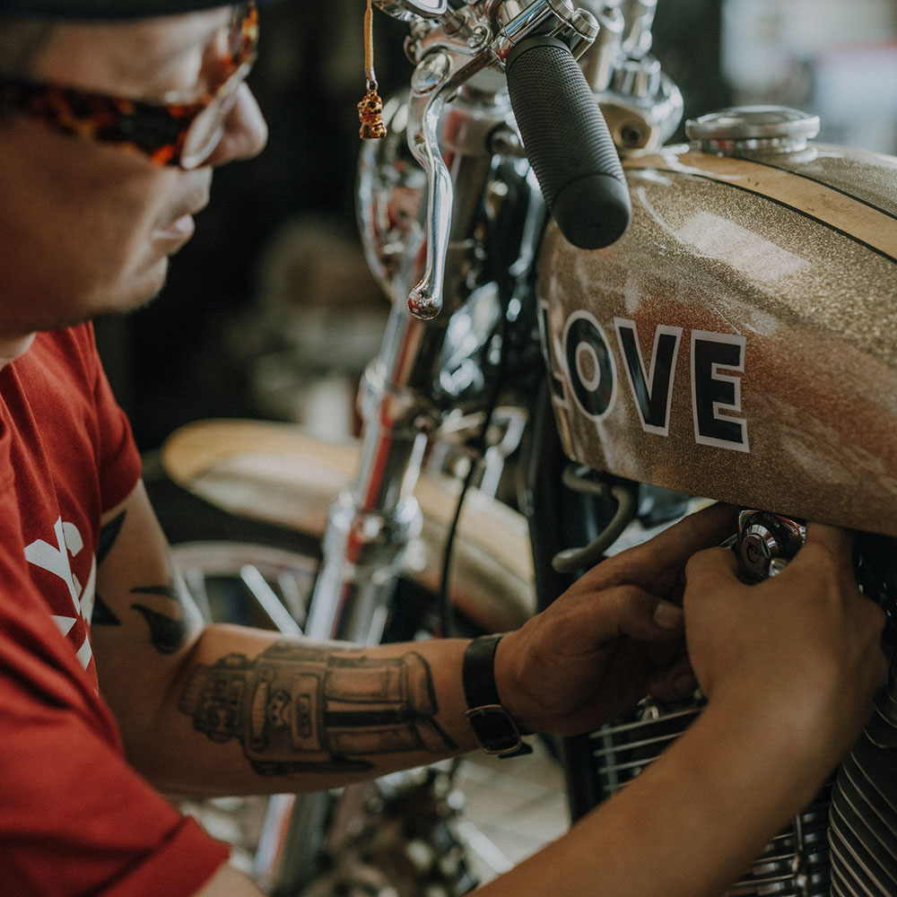 招财猫车库 Laurence 和 Seb 是 Shoei 的老朋友。法国创意团队在定制摩托车领域广为人知,并且非常热衷于短跑比赛。
