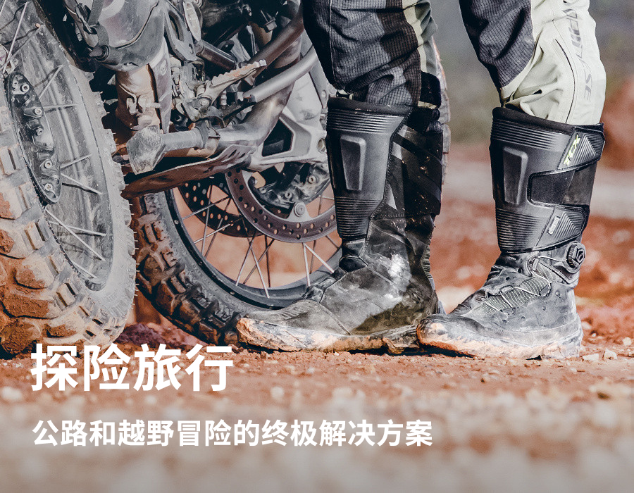 经认证的机车靴,采用 Gore-Tex® Performance 防水膜。四个季节提供最大程度的公路和越野保护和舒适性。